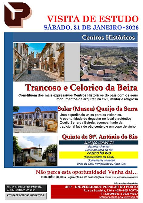 A UPP - Universidade Popular do Porto realiza no dia 31 de janeiro de 2026, sábado, uma Visita de Estudo a Trancoso e Celorico da Beira.