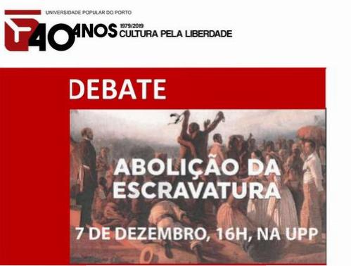 Assinalando os 150 anos da abolição da escravatura no império português, a UPP vai promover no dia 7 de dezembro na sua sede (Rua da Boavista, 736 – Porto) um debate sobre a questão da escravatura orientado por Silvestre Lacerda, Diretor do Arquivo Nacional da Torre do Tombo e membro da direção da UPP.