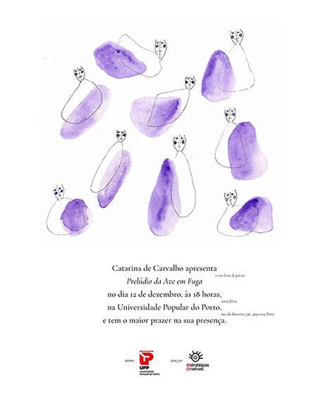 A UPP-Universidade Popular do Porto tem o prazer de anunciar o lançamento do livro Prelúdio da Ave em Fuga, de Catarina de Carvalho, que decorrerá na sexta-feira, dia 12 de Dezembro, às 18H00, na UPP, Rua da Boavista, 736 (Metro: Carolina Michaelis).
